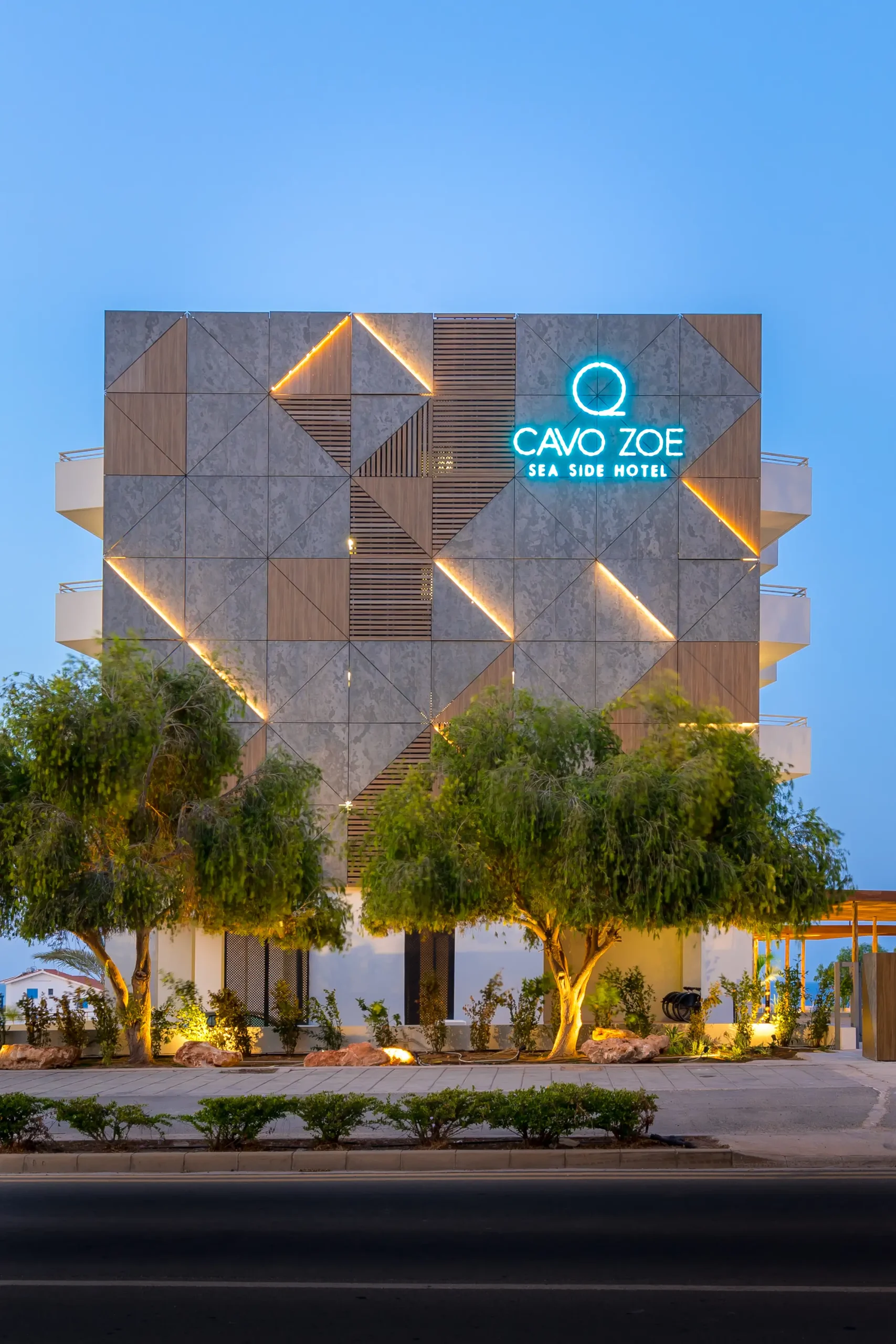 A striking modern hotel façade that blends texture, depth, and light — awarded the Facade Design Award for its excellence.